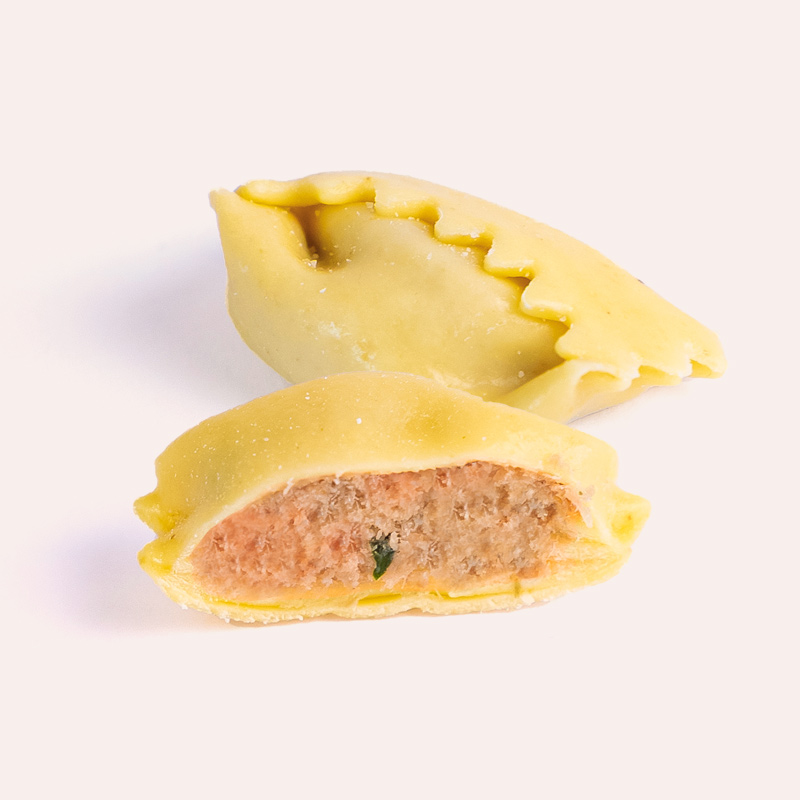 la pasta fresca all’uovo è preparata con semola di grano duro e uova fresche, tirata sottilissima per racchiudere il ripieno in modo delicato. La consistenza leggera della pasta esalta il sapore ricco e profondo del brasato, offrendo un contrasto perfetto in ogni boccone.