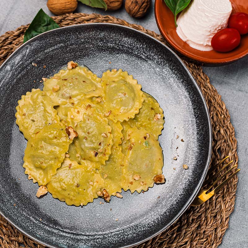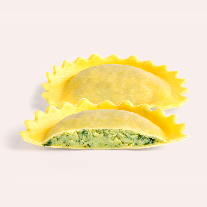 un equilibrio perfetto tra la ricotta fresca, spinaci stufati, il sapore deciso del Grana Padano DOP e il legante naturale delle uova. Questo ripieno cremoso e saporito conquista con la sua semplicità e armonia, regalando un gusto pieno ad ogni morso.