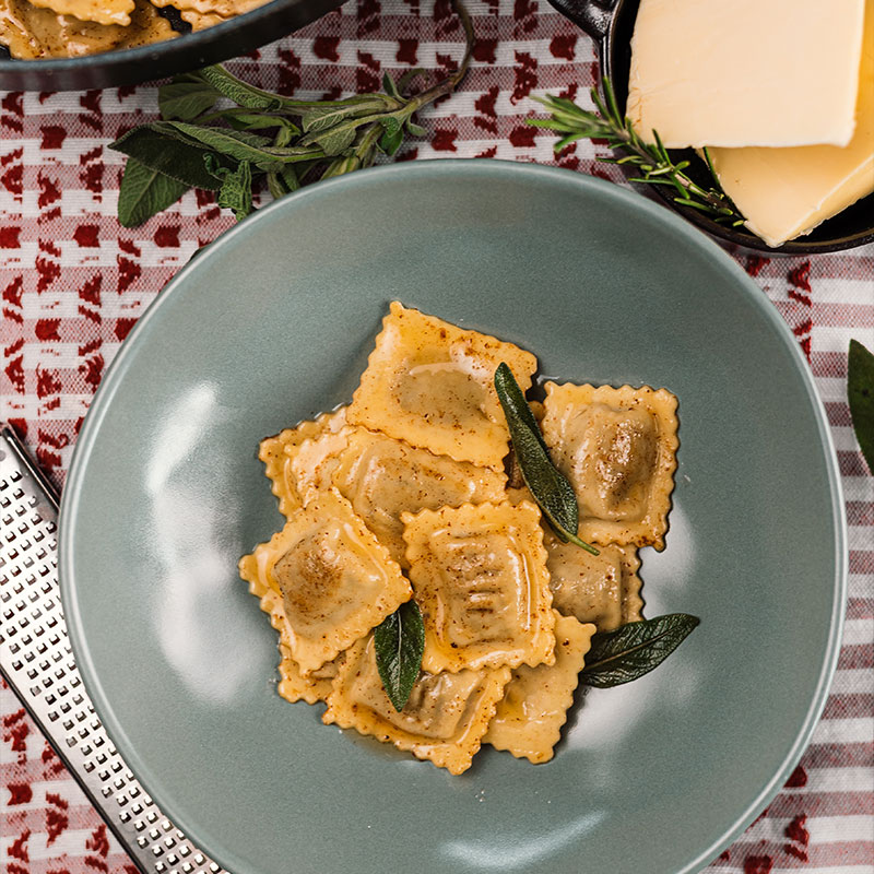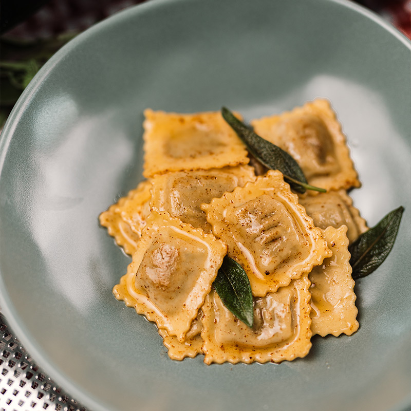 tirata finemente con semola di grano duro e uova fresche, racchiude il ripieno con eleganza e tenuta perfetta. Versatili e gustosi, ideali con ragù, burro fuso o in brodo.